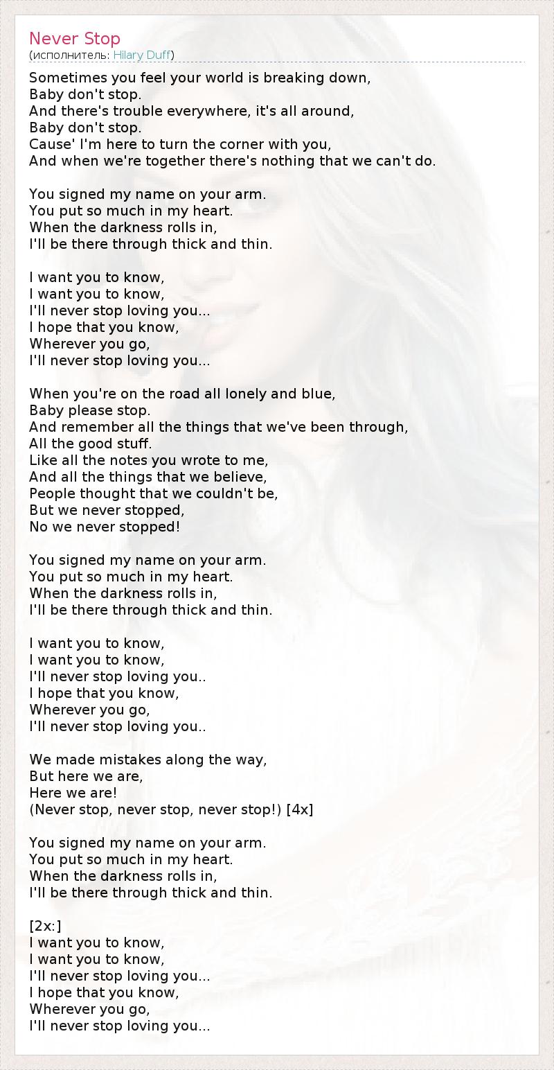 А как ты думаешь, о чем песня "Never Stop" ?