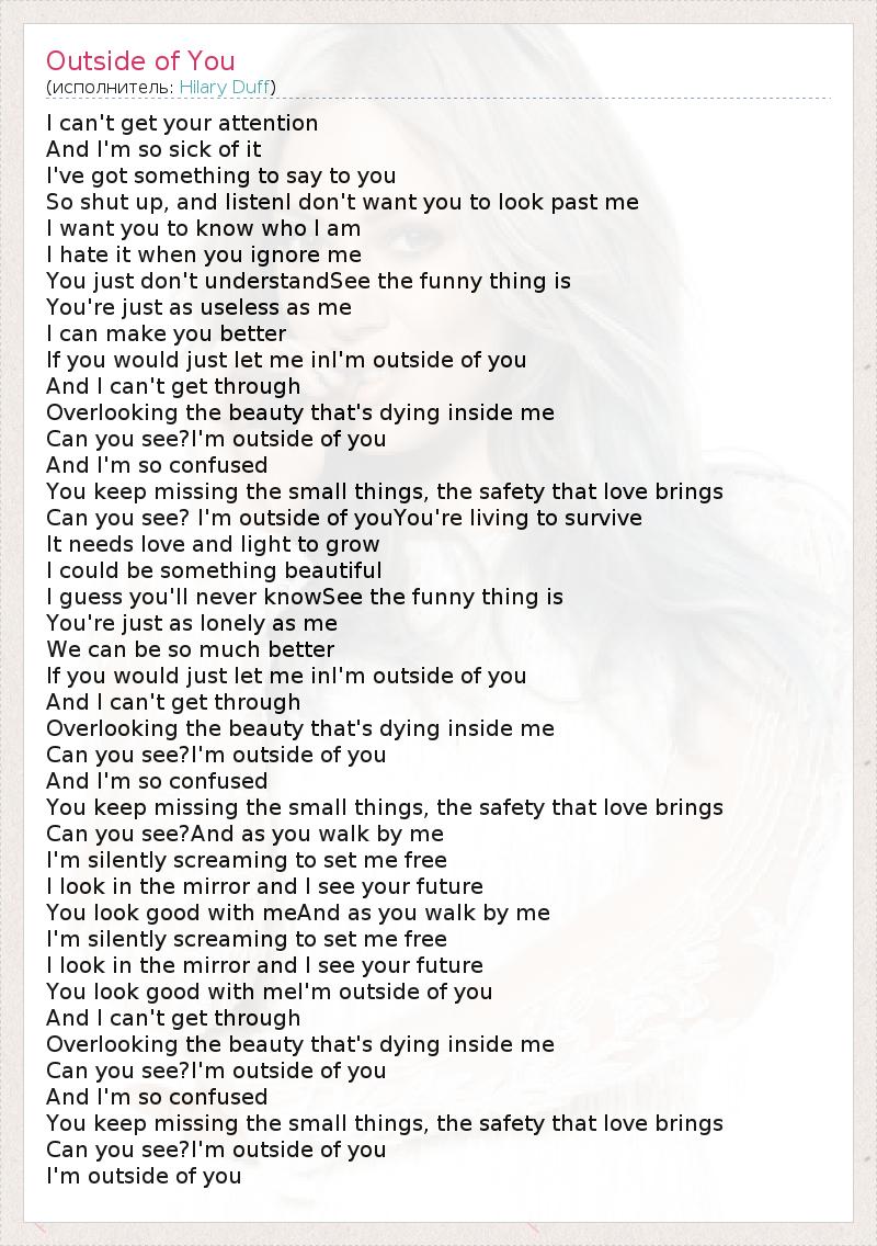 «Outside of You» (Alecia Moore, Chantal Kreviazuk, Raine Maida) — 4:03