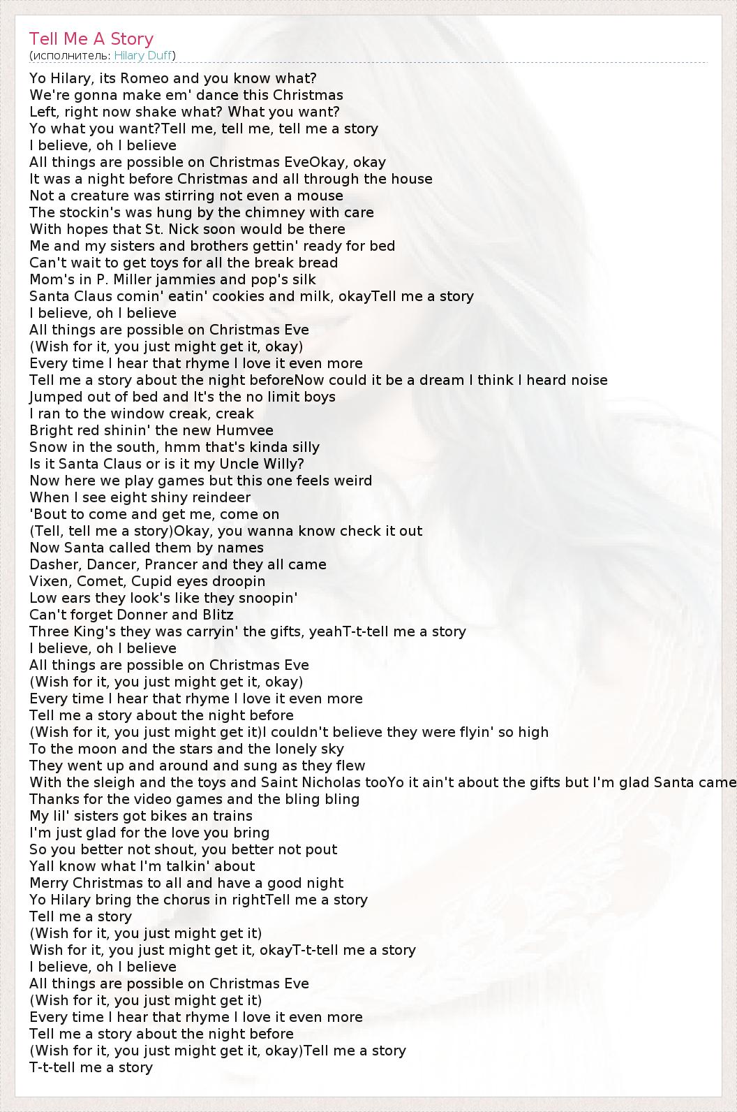 А как ты думаешь, о чем песня "Tell Me A Story" ?