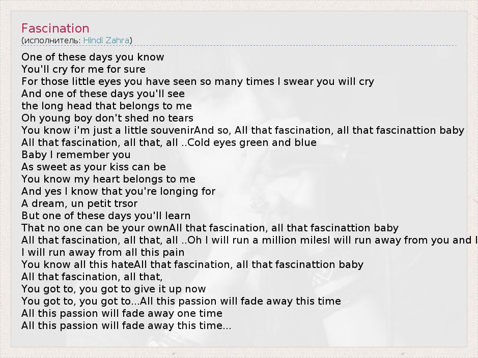 А как ты думаешь, о чем песня "Fascination" ?