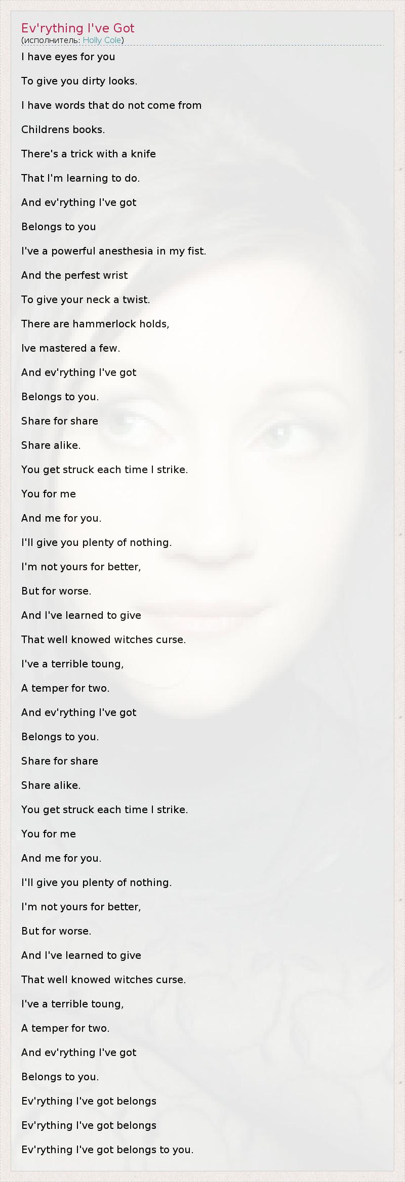 And ev'rything I've got