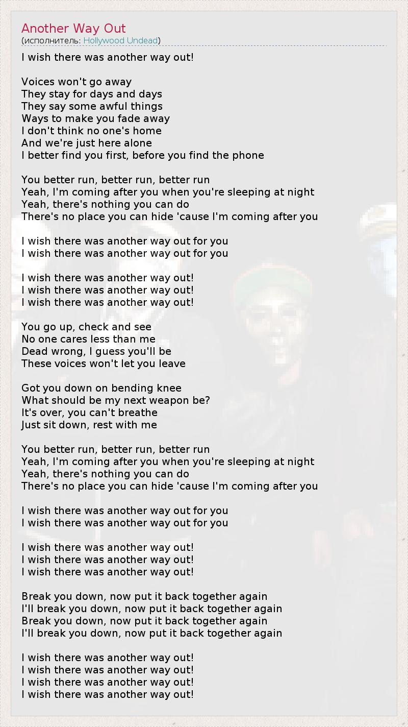 А как ты думаешь, о чем песня "Another Way Out" ?