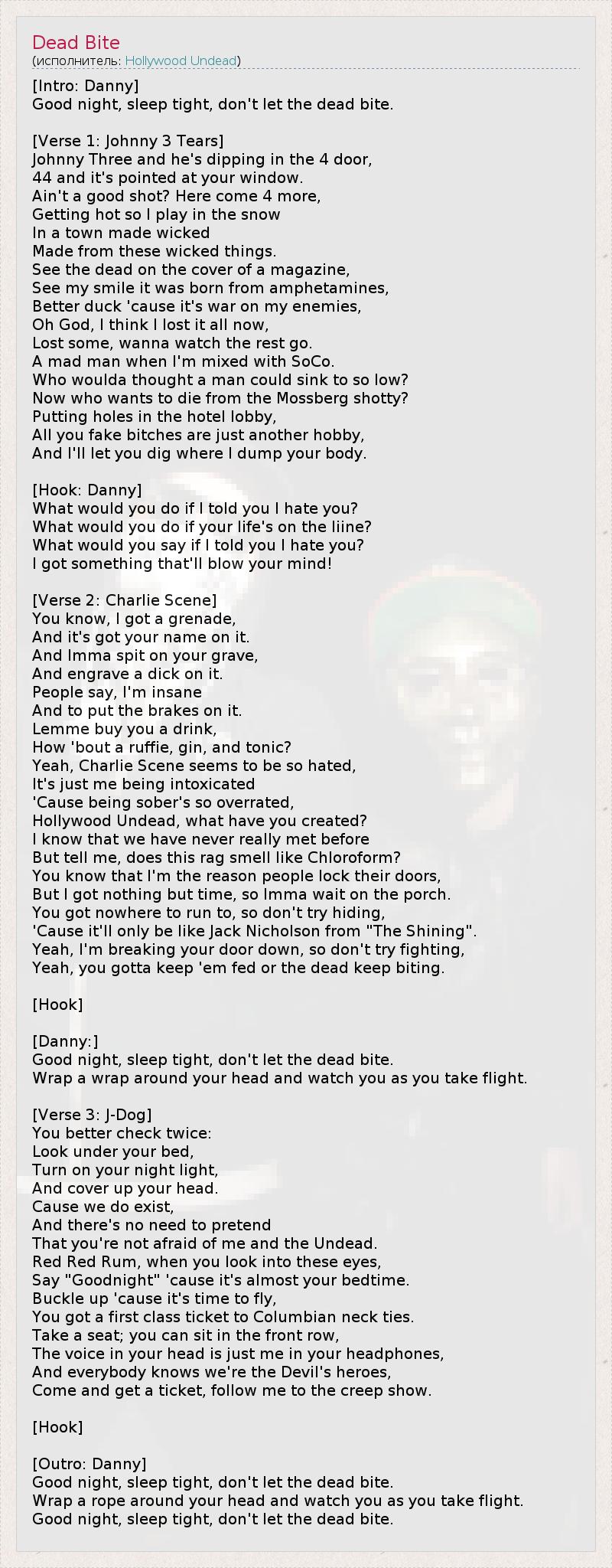 А как ты думаешь, о чем песня "Dead Bite" ?