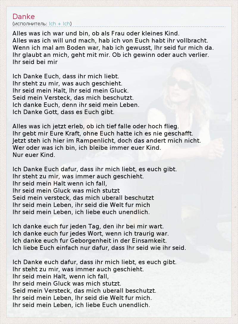 Ich danke euch fur jedes Wort, wenn ich traurig war.