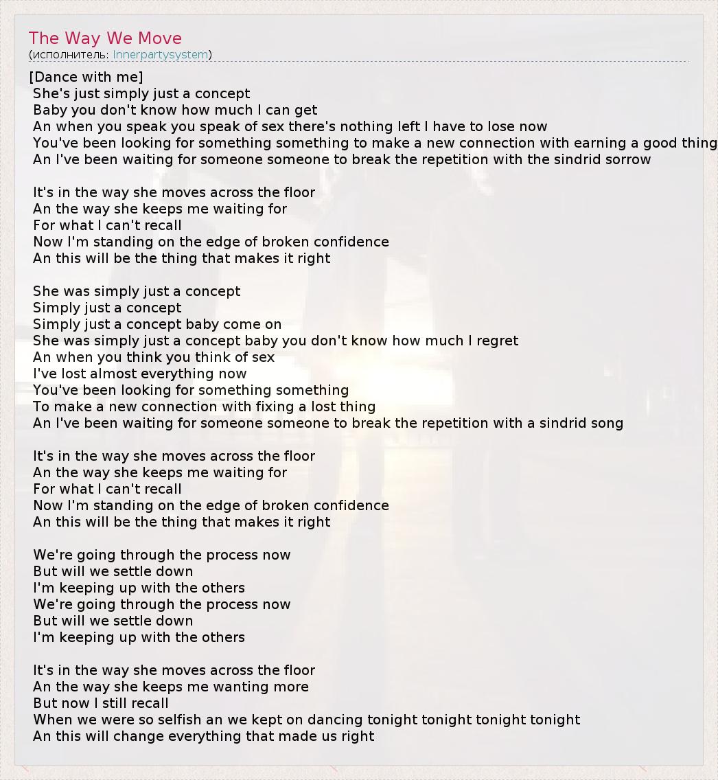 А как ты думаешь, о чем песня "The Way We Move" ?