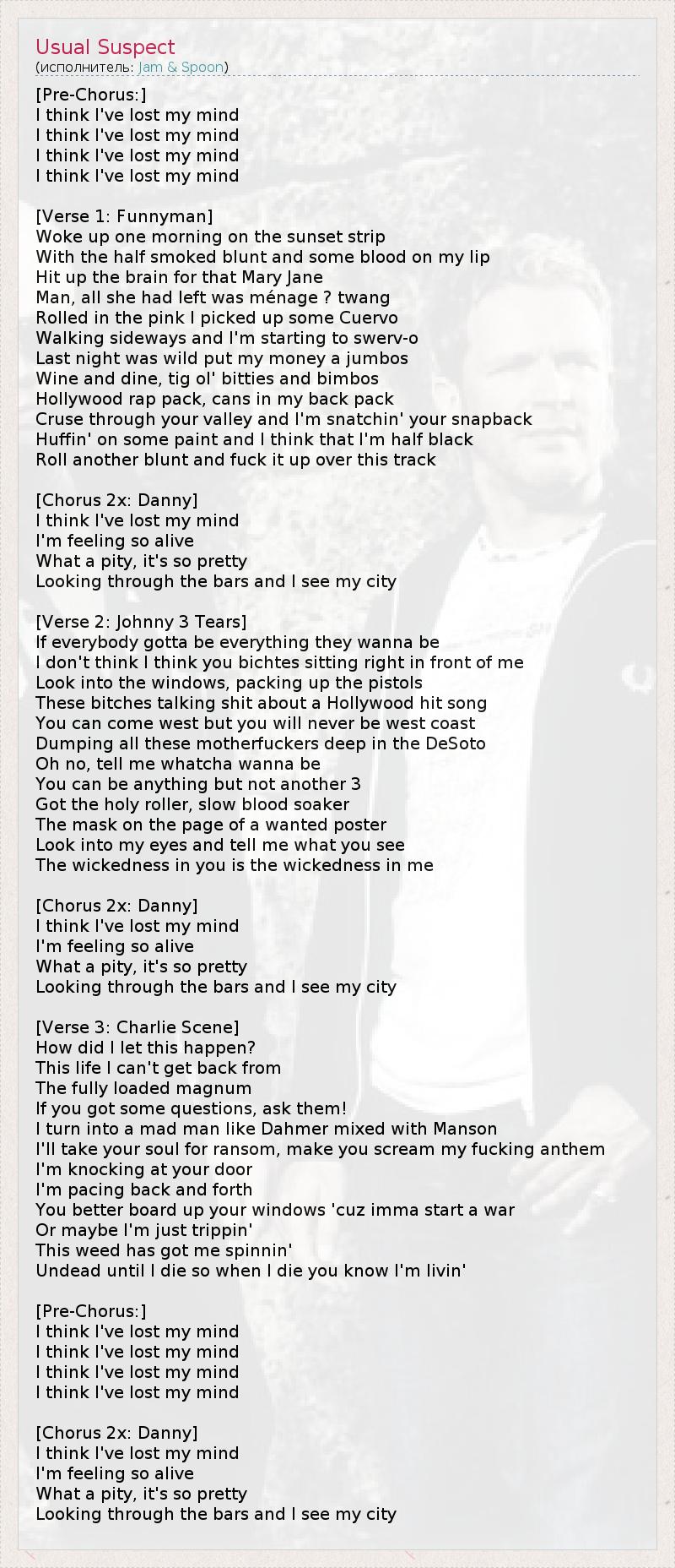 А как ты думаешь, о чем песня "Usual Suspect" ?