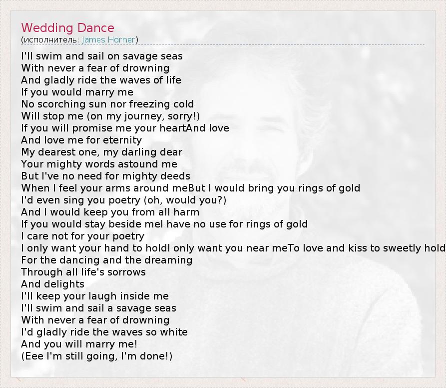 А как ты думаешь, о чем песня "Wedding Dance" ?