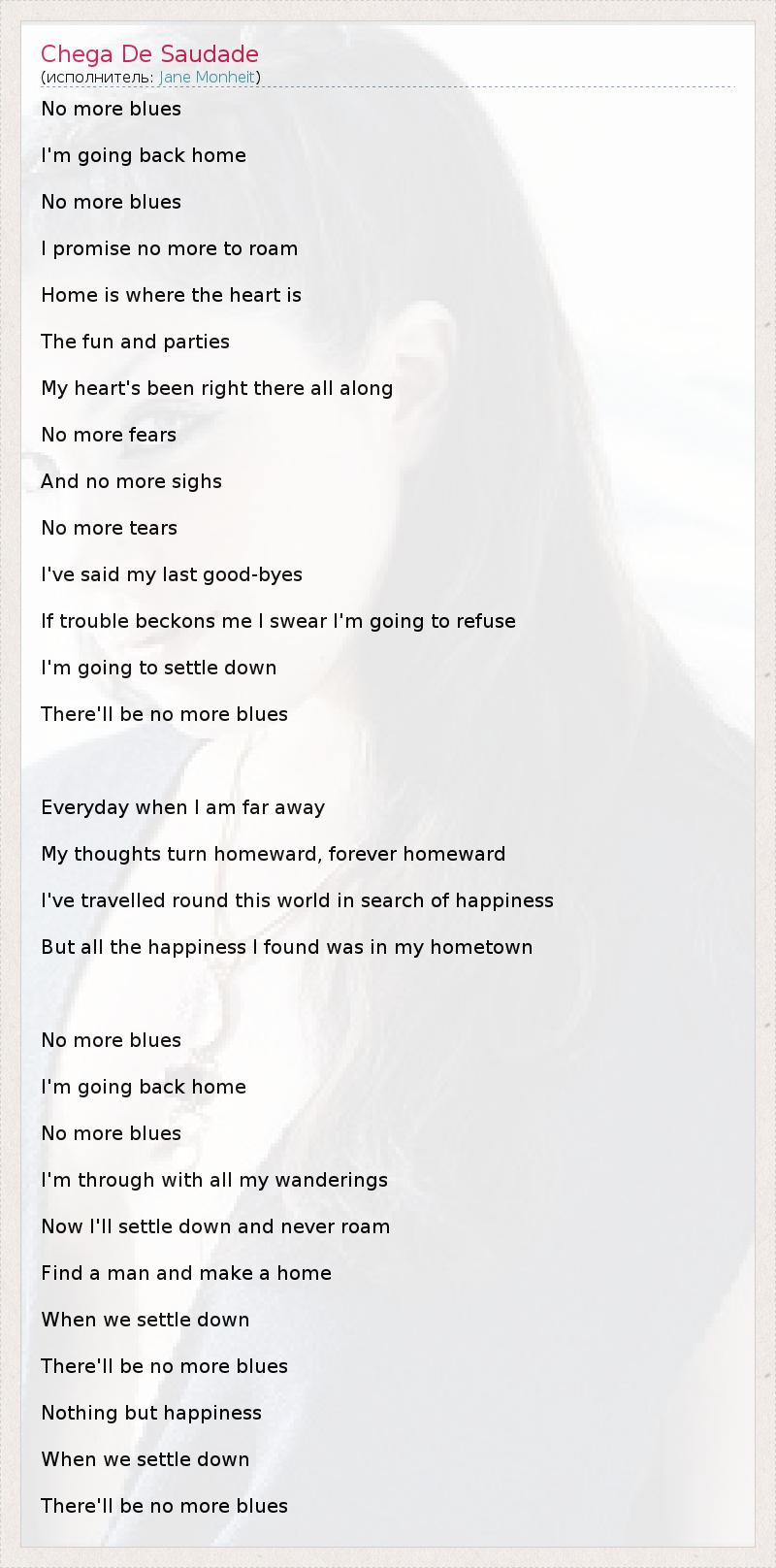 А как ты думаешь, о чем песня "Chega De Saudade" ?