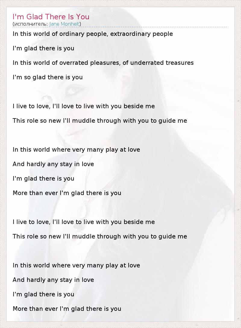 А как ты думаешь, о чем песня "I'm Glad There Is You" ?
