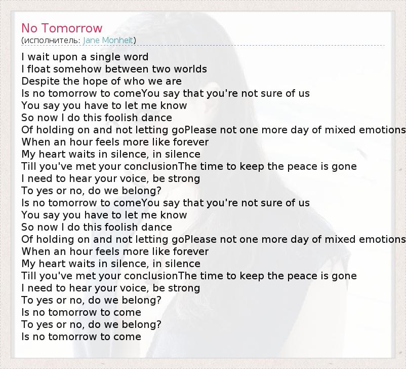 А как ты думаешь, о чем песня "No Tomorrow" ?