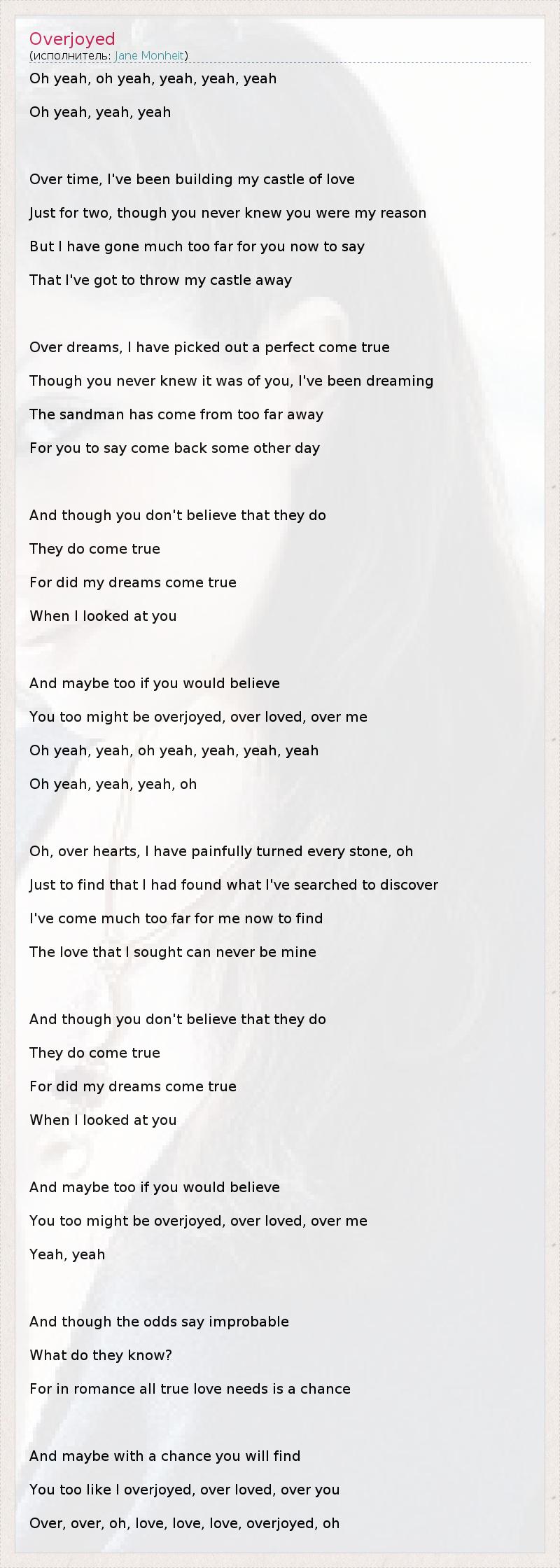 А как ты думаешь, о чем песня "Overjoyed" ?