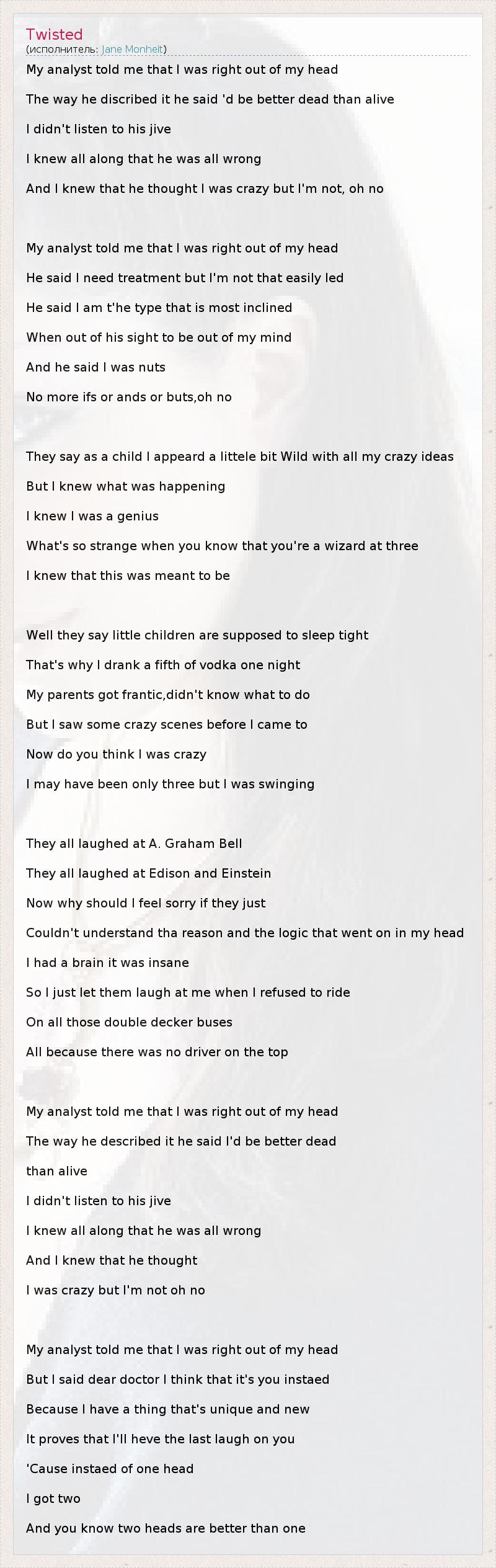 Это интересно:Джейн Монхайт родилась 3 ноября 1977 года и выросла в Oукдейле, о. Лонг-Айленд, США. Она начала петь, лишь только научилась говорить; вся ее семья очень музыкальна: тетя и бабушка были профессиональными певицами, мать играла в музыкальном театре, отец был исполнителем на банджо, а брат Джейн – рок-гитарист. Когда она училась лишь в начальной школе, то уже тогда писала пьесы, ставила спектакли... продолжение