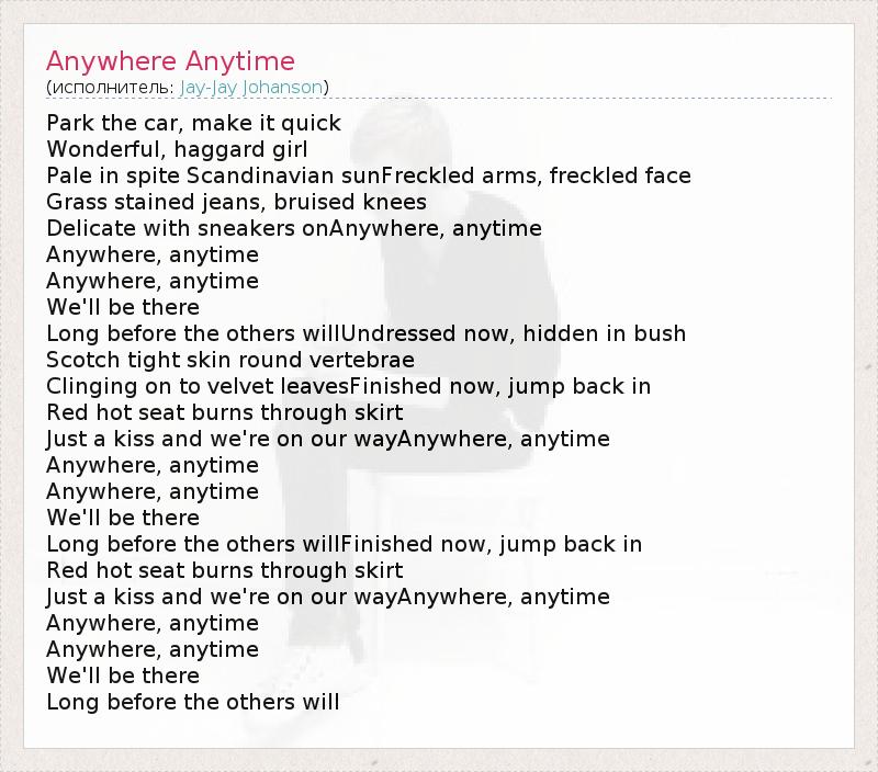 А как ты думаешь, о чем песня "Anywhere Anytime" ?