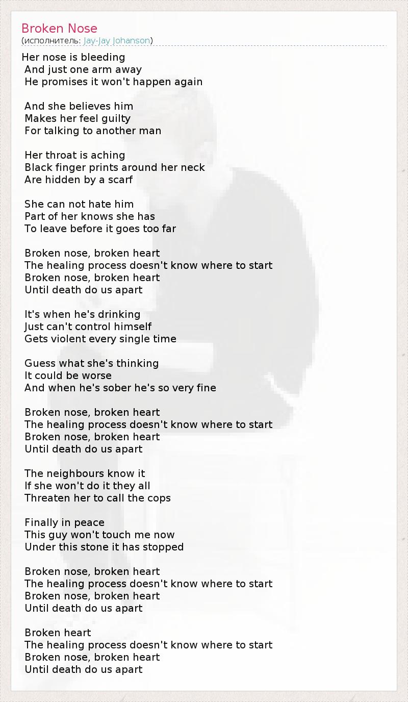 А как ты думаешь, о чем песня "Broken Nose" ?