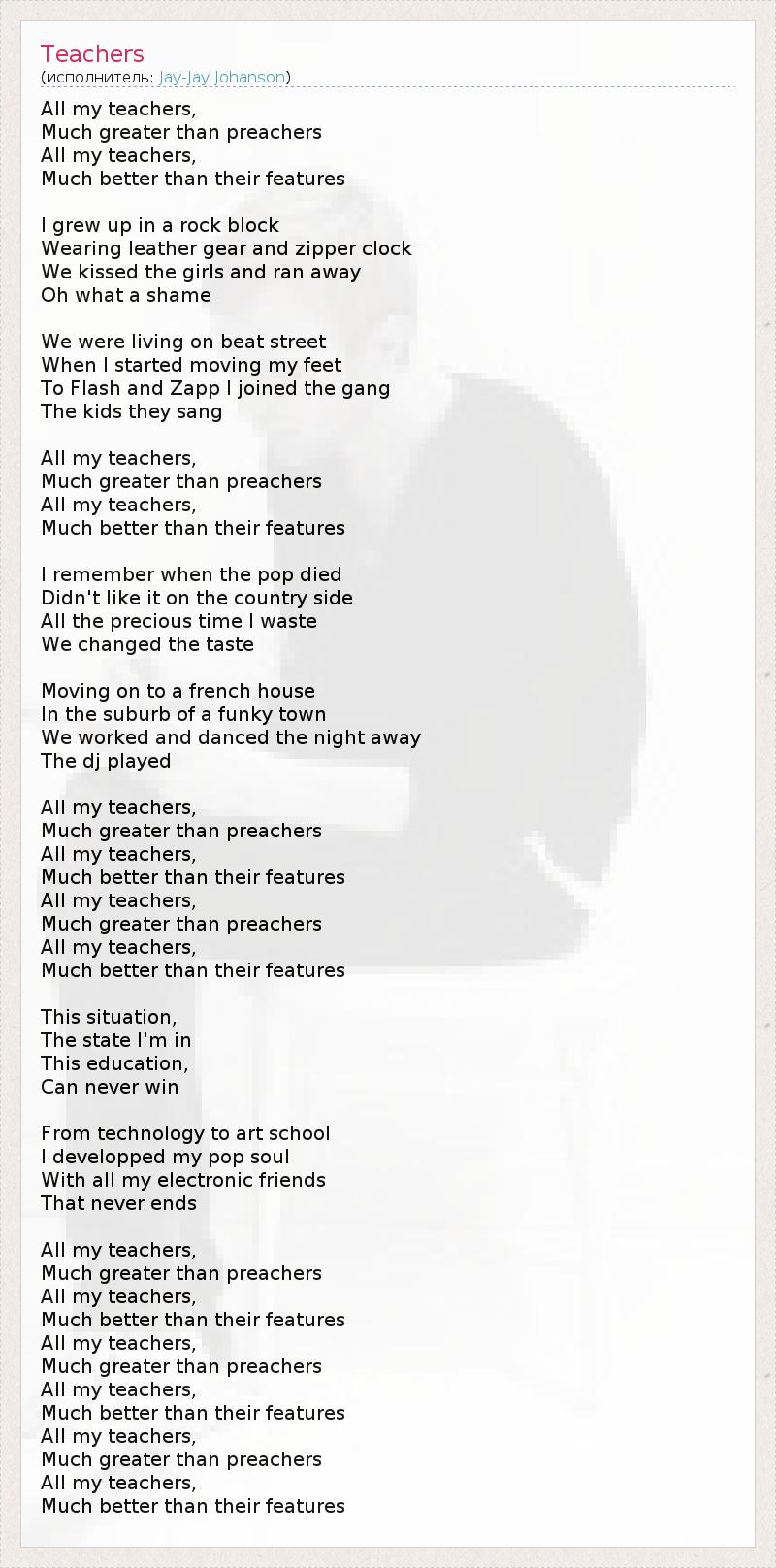 А как ты думаешь, о чем песня "Teachers" ?