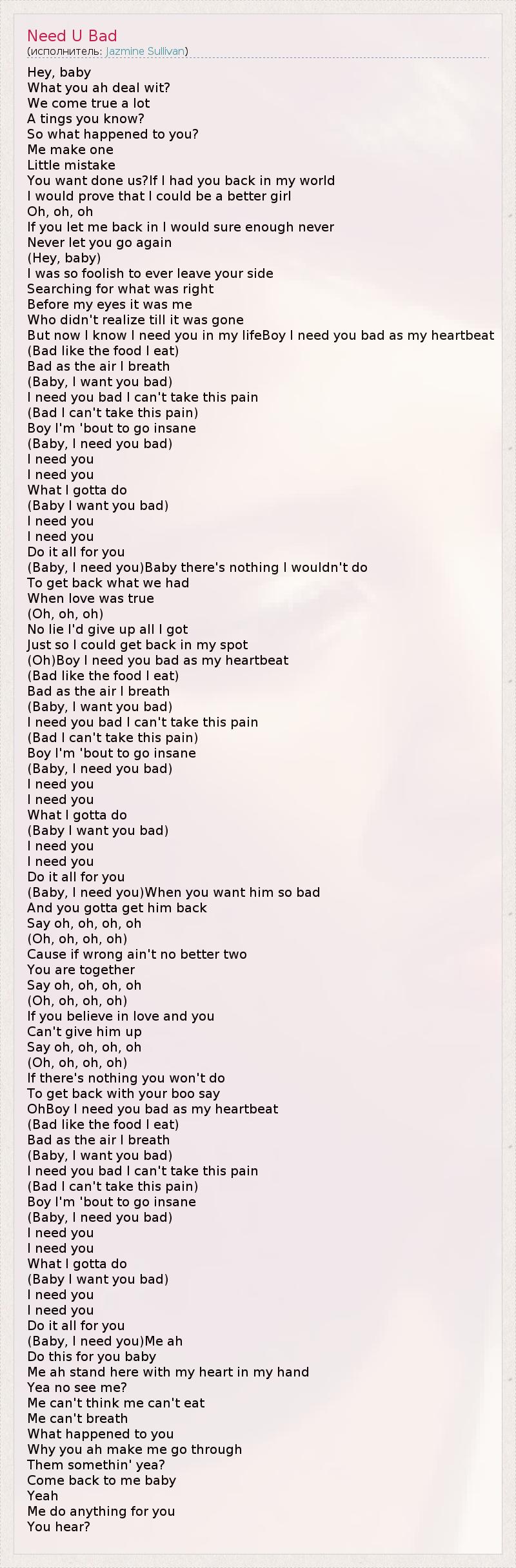 А как ты думаешь, о чем песня "Need U Bad" ?
