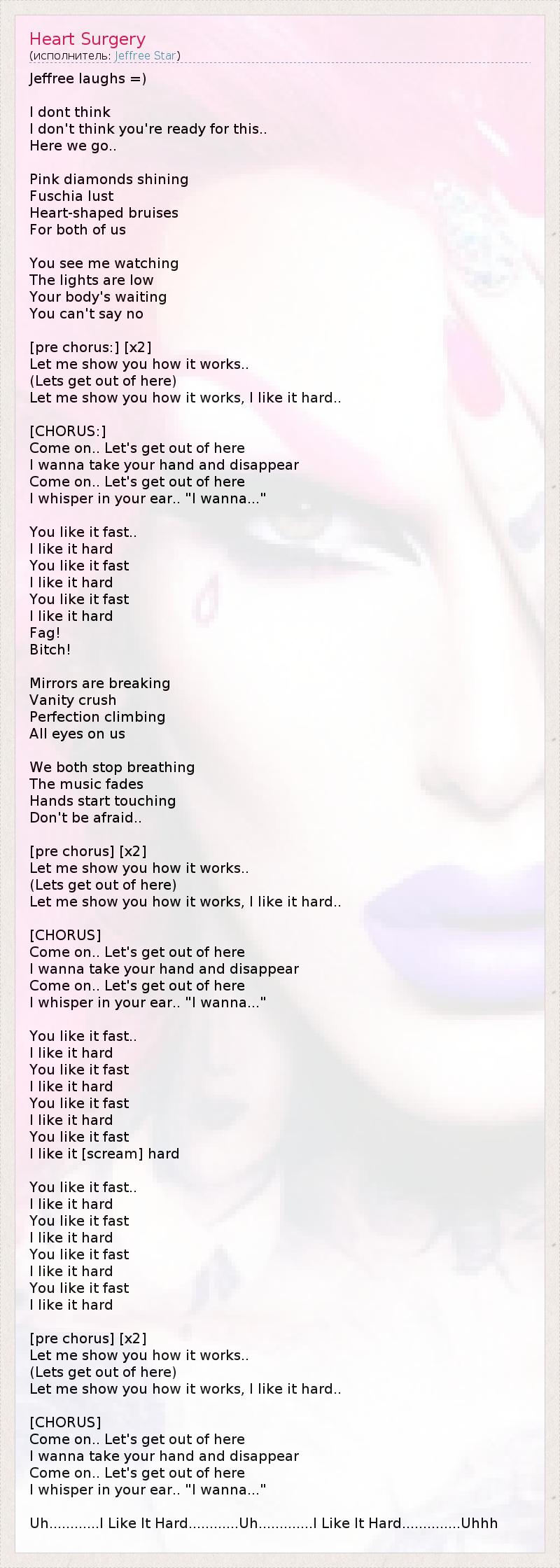А как ты думаешь, о чем песня "Heart Surgery" ?