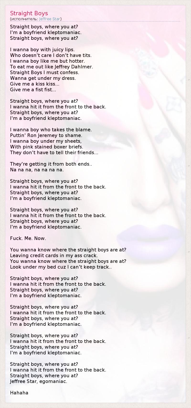 А как ты думаешь, о чем песня "Straight Boys" ?