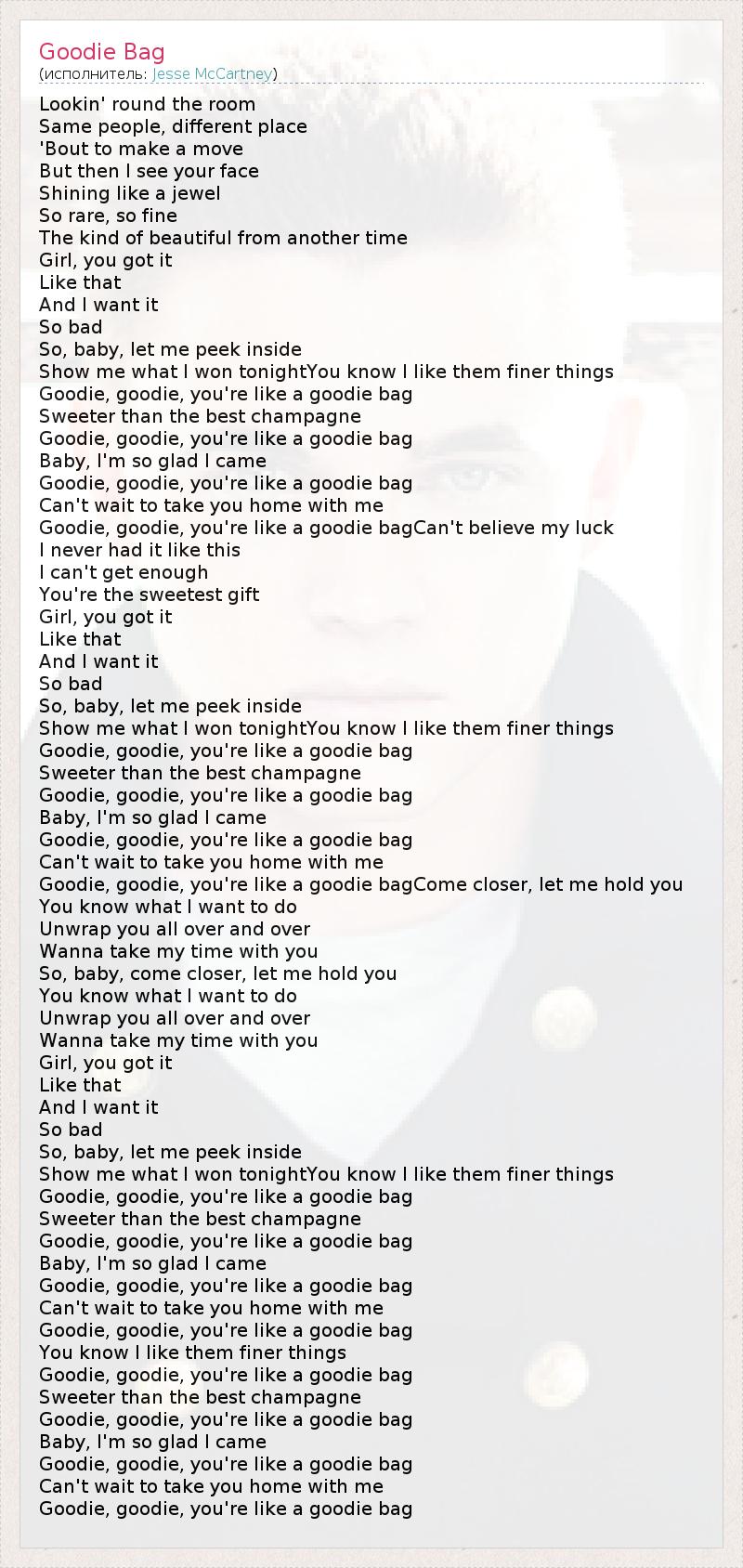 А как ты думаешь, о чем песня "Goodie Bag" ?