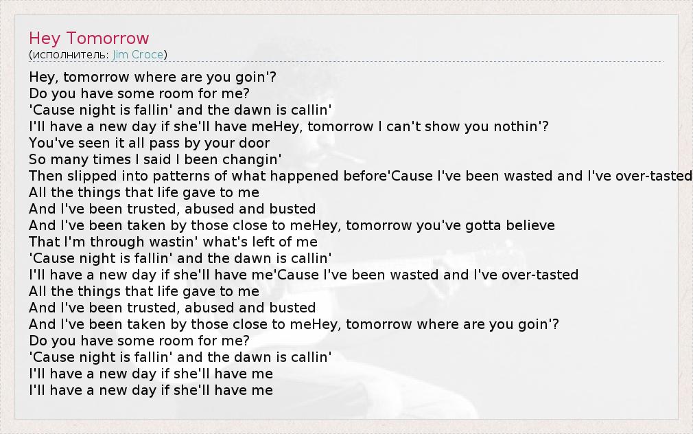 А как ты думаешь, о чем песня "Hey Tomorrow" ?