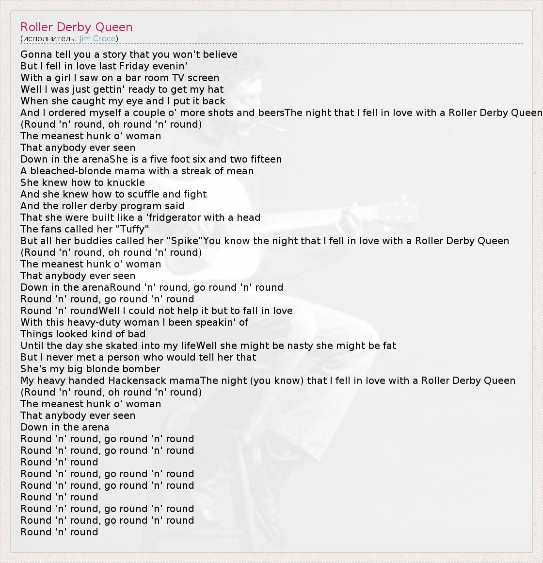 А как ты думаешь, о чем песня "Roller Derby Queen" ?