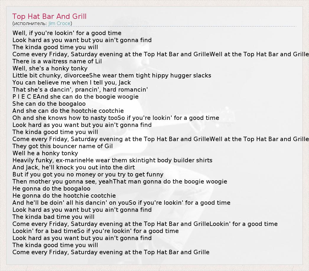 А как ты думаешь, о чем песня "Top Hat Bar And Grill" ?