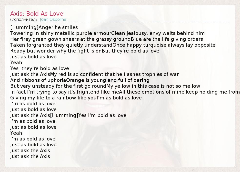 Just ask the Axis[Humming]Yes I'm bold as love