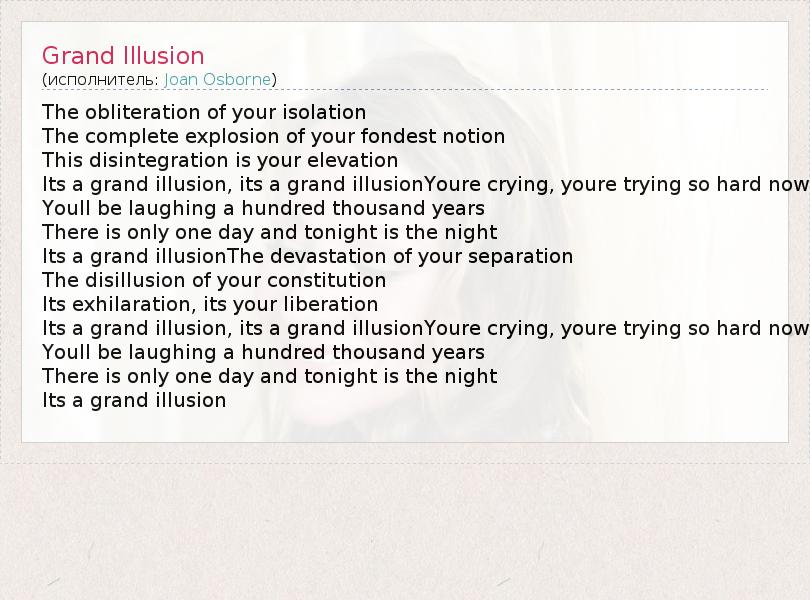 А как ты думаешь, о чем песня "Grand Illusion" ?