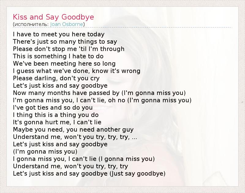 А как ты думаешь, о чем песня "Kiss and Say Goodbye " ?