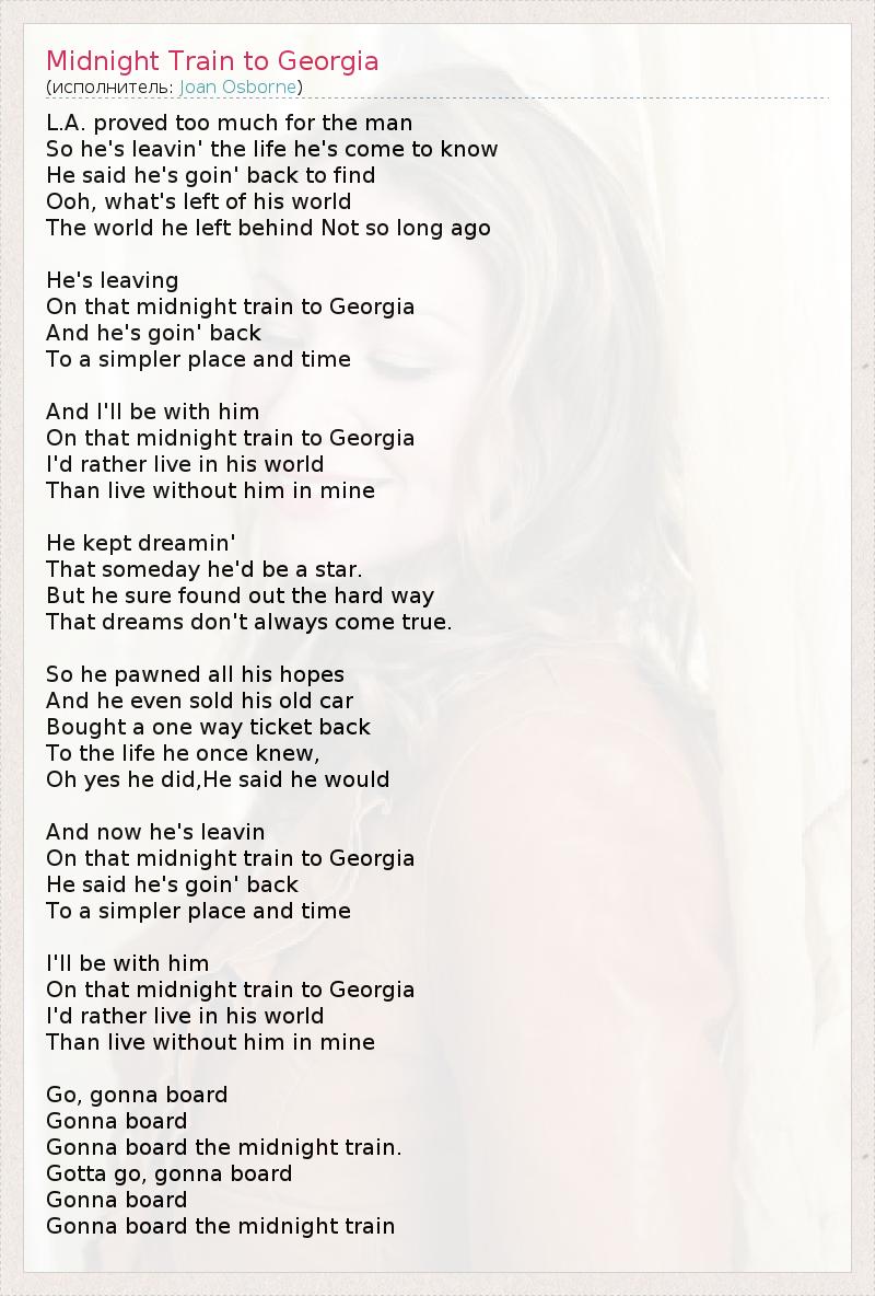 А как ты думаешь, о чем песня "Midnight Train to Georgia " ?