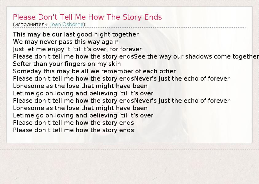 А как ты думаешь, о чем песня "Please Don't Tell Me How The Story Ends" ?