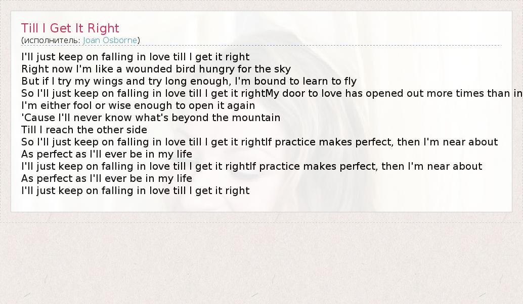 А как ты думаешь, о чем песня "Till I Get It Right" ?