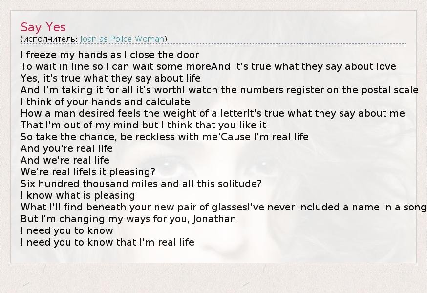 What I'll find beneath your new pair of glassesI've never included a name in a song