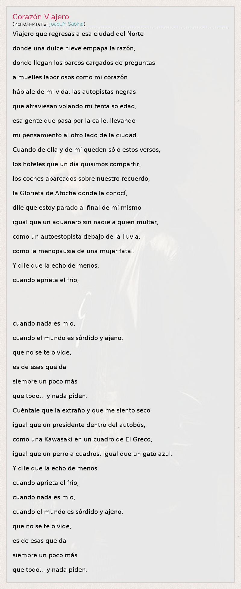 А как ты думаешь, о чем песня "Corazón Viajero" ?