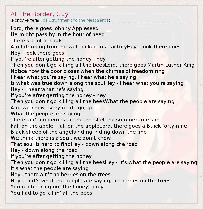 А как ты думаешь, о чем песня "At The Border, Guy" ?