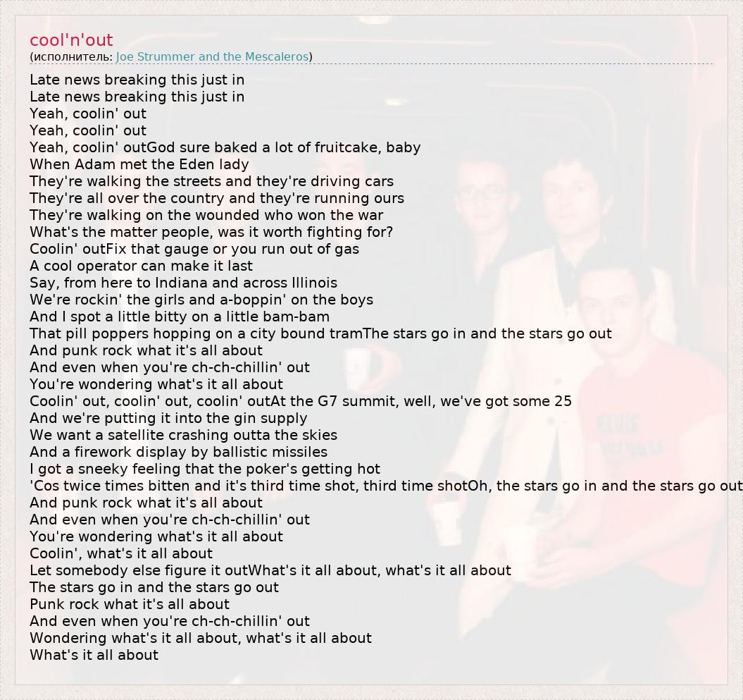 А как ты думаешь, о чем песня "cool'n'out" ?