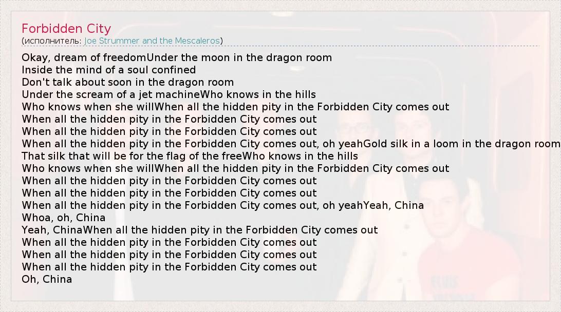 А как ты думаешь, о чем песня "Forbidden City" ?