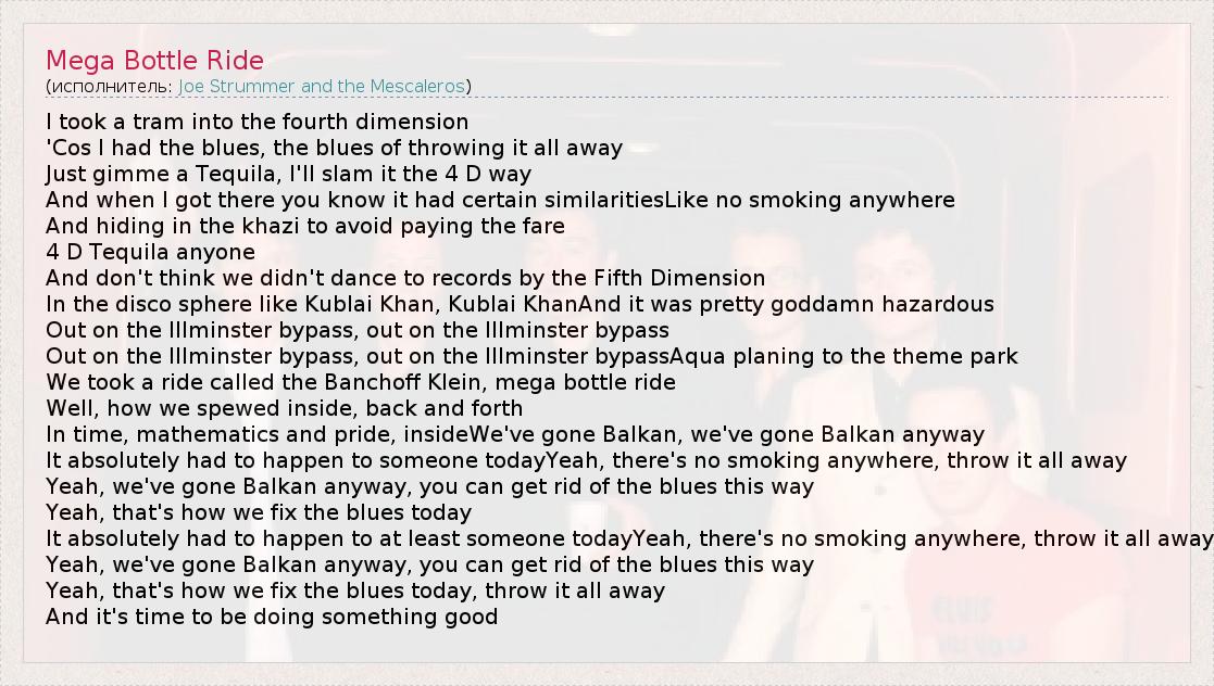 А как ты думаешь, о чем песня "Mega Bottle Ride" ?