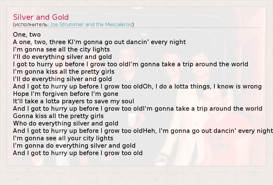 А как ты думаешь, о чем песня "Silver and Gold" ?