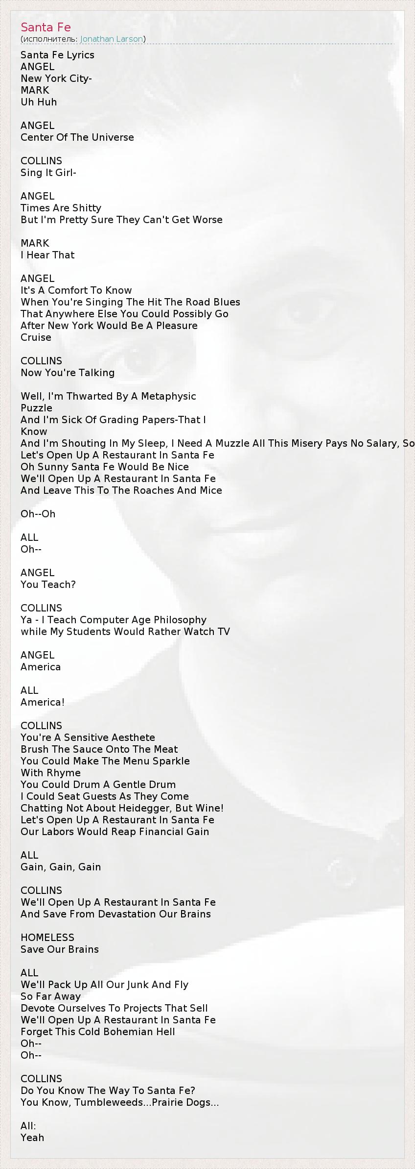 А как ты думаешь, о чем песня "Santa Fe" ?
