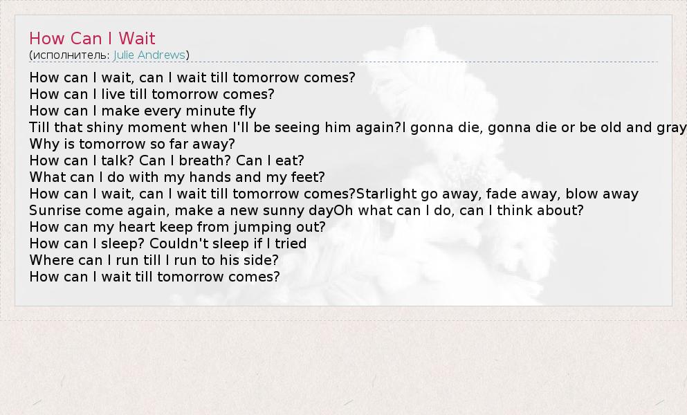 А как ты думаешь, о чем песня "How Can I Wait" ?