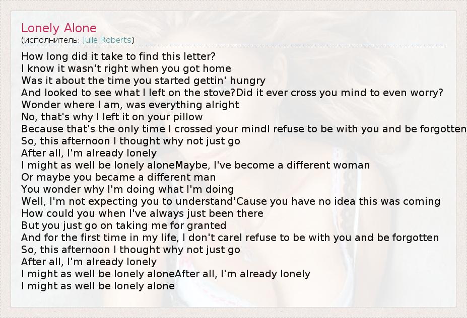 А как ты думаешь, о чем песня "Lonely Alone" ?
