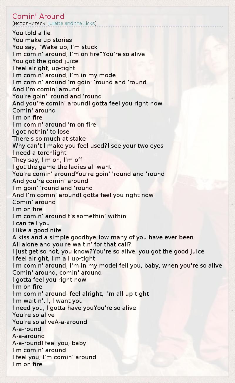 Comin' around, comin' around