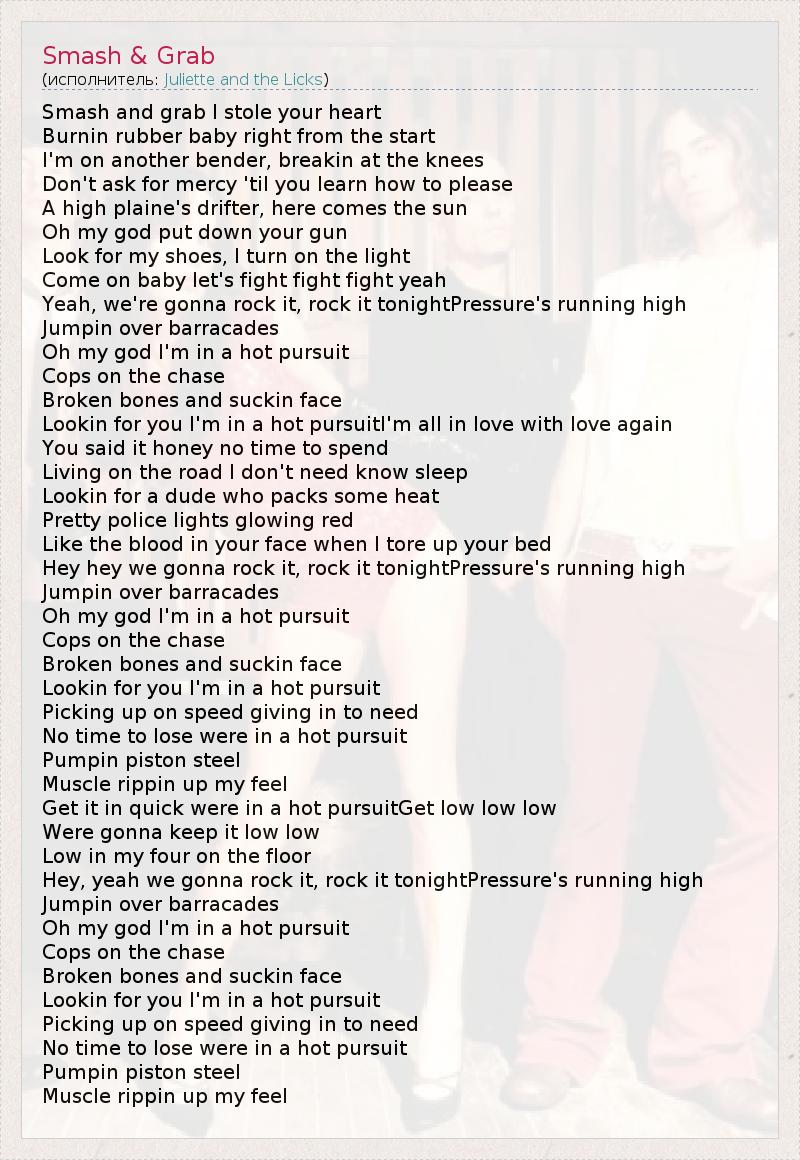 А как ты думаешь, о чем песня "Smash & Grab" ?
