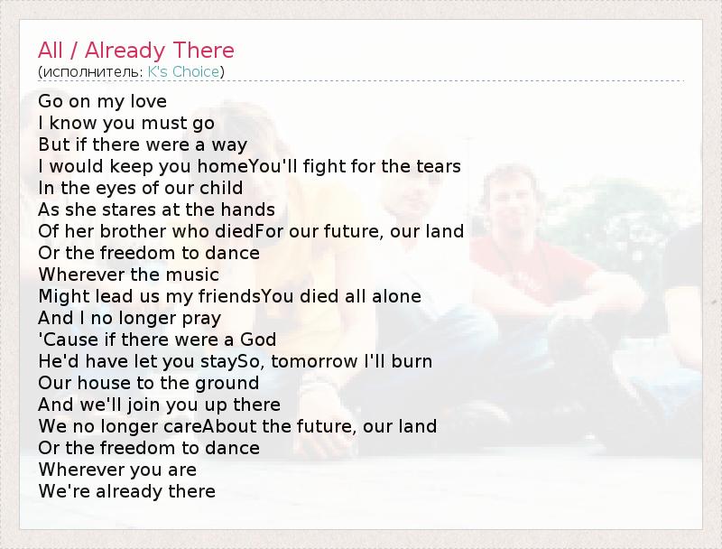 А как ты думаешь, о чем песня "All / Already There" ?