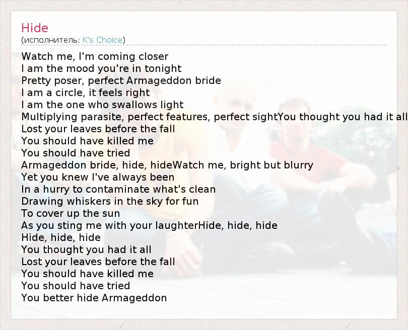 Armageddon bride, hide, hideWatch me, bright but blurry