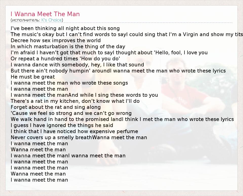 А как ты думаешь, о чем песня "I Wanna Meet The Man" ?