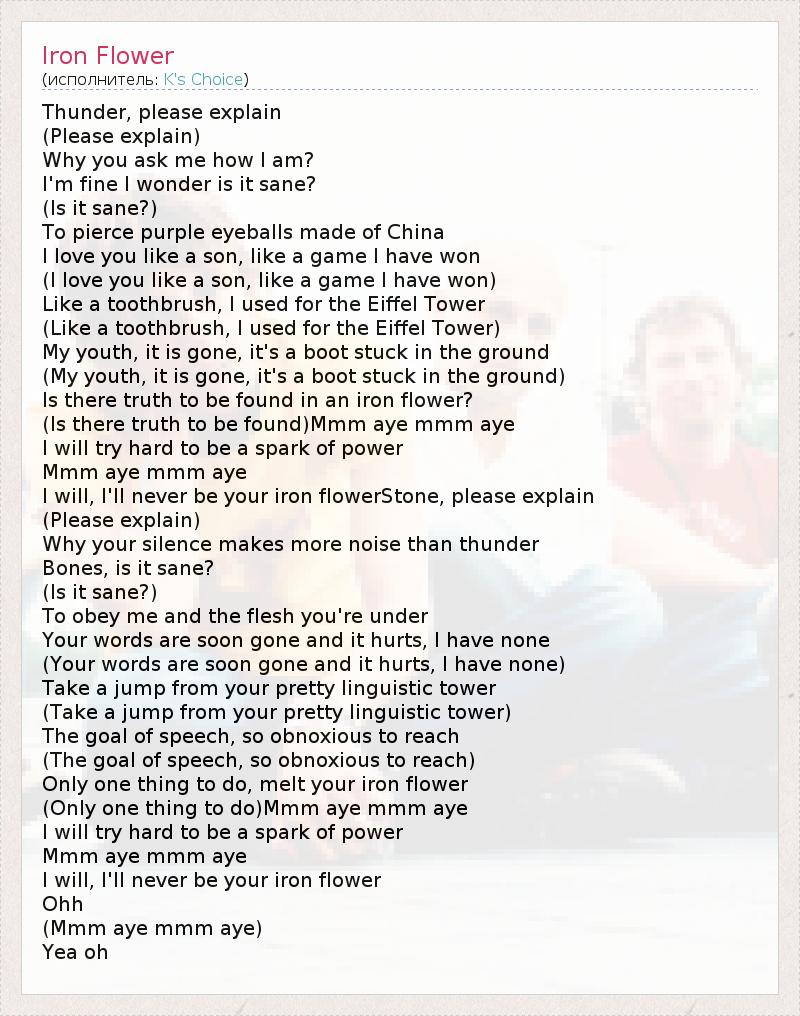 А как ты думаешь, о чем песня "Iron Flower" ?