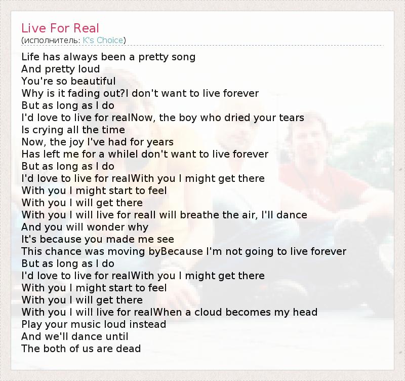 Это интересно:K’s Choice - бельгийская рок-группа из Антверпена. Их стиль можно охарактеризовать как гитарный рок, или фолк-рок.Состав:Сара Беттенс - вокал, гитара.Герт Беттенс - гитара, клавишные, вокал.Эрик Гроссман - бас-гитара.Ян ван Сихем младший - гитара.Коен Лиекенс - ударные.В настоящий момент участники группы работают над сольным проектами. Сара Беттенс выпустила альбом под... продолжение
