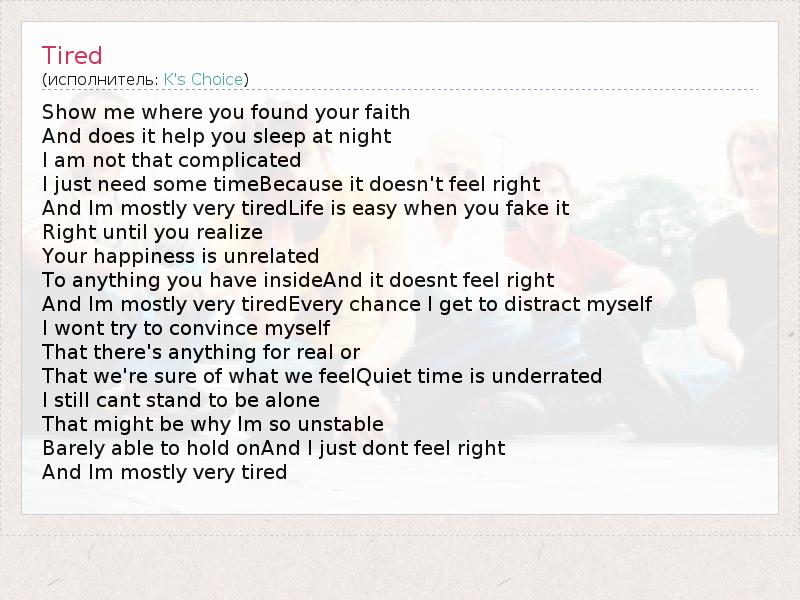 А как ты думаешь, о чем песня "Tired" ?